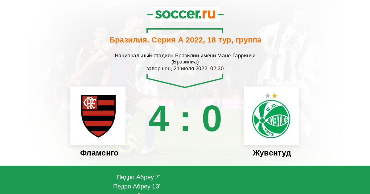 13' (2:0) Педро Абреу (21) (Эвертон Рибейро (7))