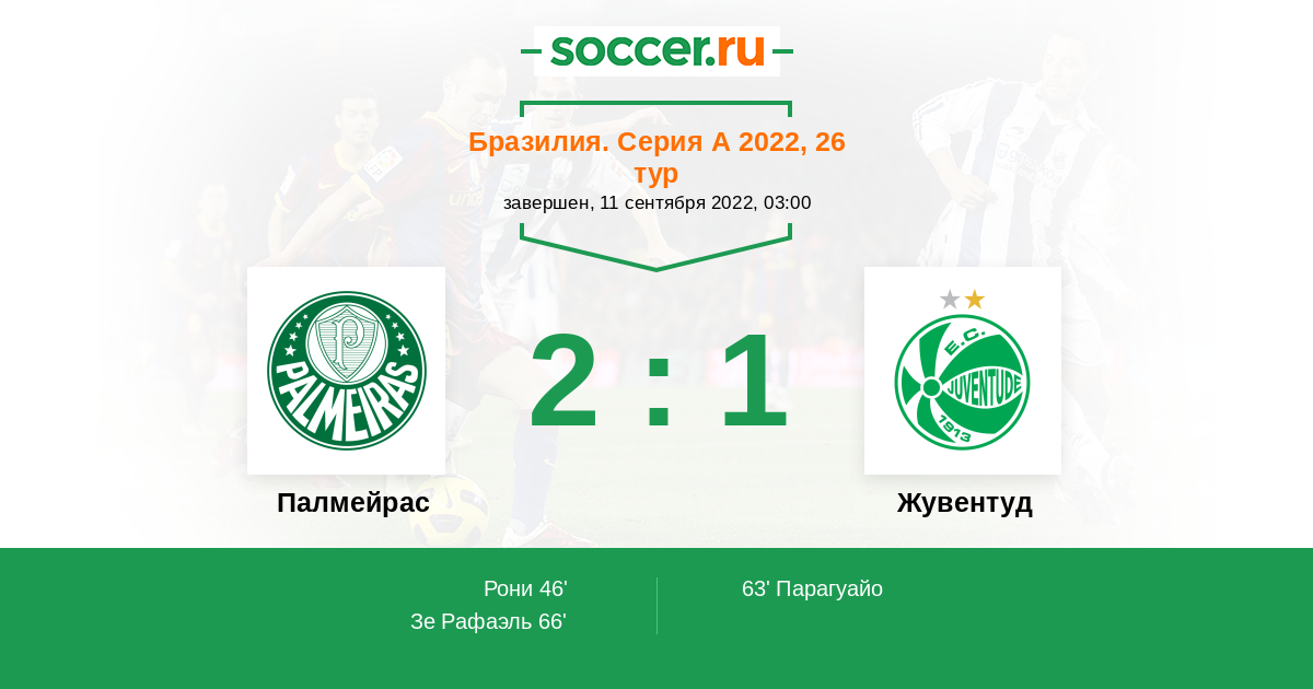 66' (2:1) Зе Рафаэль (8) (Скарпа Густаво (14))