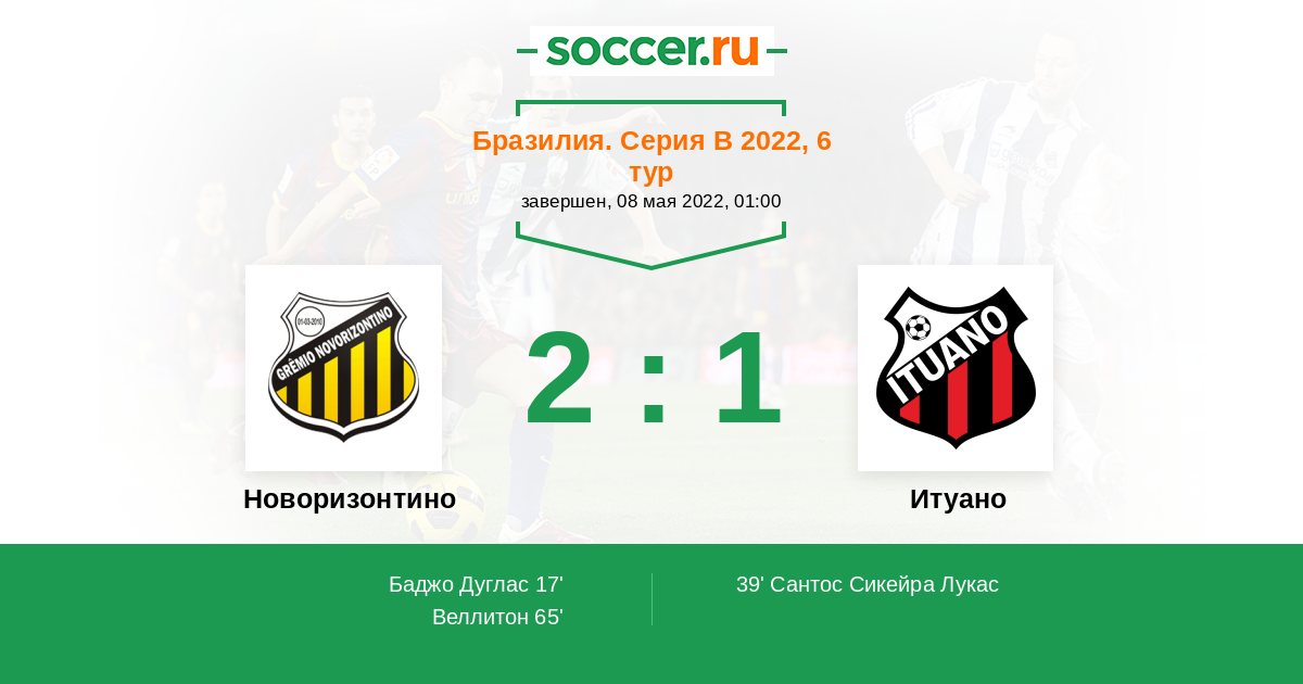 39' (1:1) Сантос Сикейра Лукас (8) (Маграо Жерсон (10))