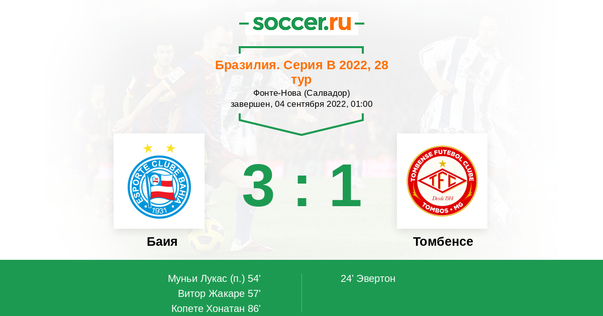 86' (3:1) Копете Хонатан (36) (Даниэлзиньо (10))