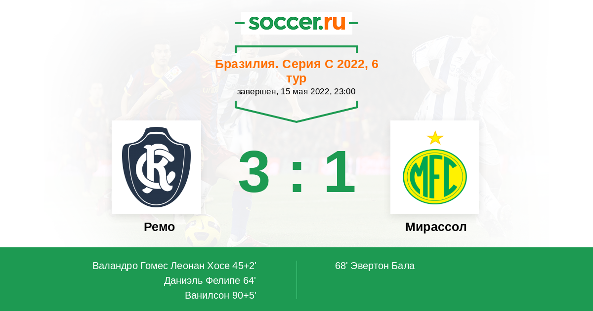 Запасные: Эвертон Бала (с 66'), Кауан (с 66'), Эдуардо (с 73'), Иван (с 73'), Пауло Энрике (с 82'), Дарлей, Диего, Морейра, Октавио, Винисиус, Кассиано
