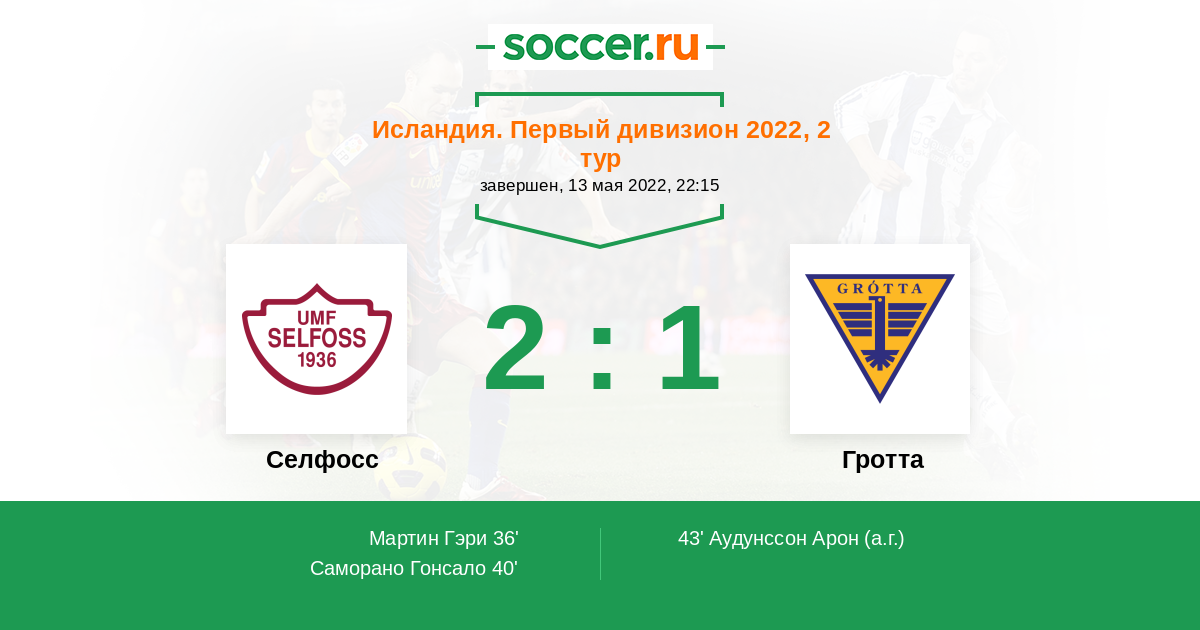 43' (2:1) Автогол Аудунссон Арон