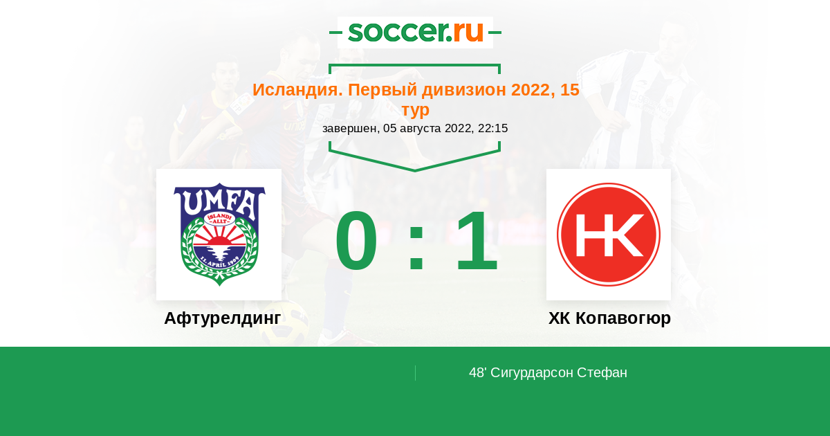 48' (0:1) Сигурдарсон Стефан