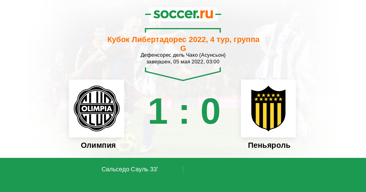 33' (1:0) Сальседо Сауль (5) (Кардосо Фернандо (14))