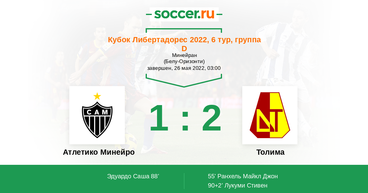 55' (0:1) Ранхель Майкл Джон (17) (Ибаргуэн Андрес (21))