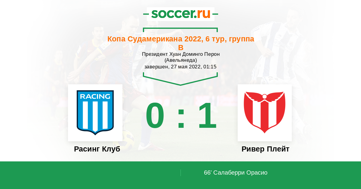 66' (0:1) Салаберри Орасио (4) (Брунелли Сантьяго (3))