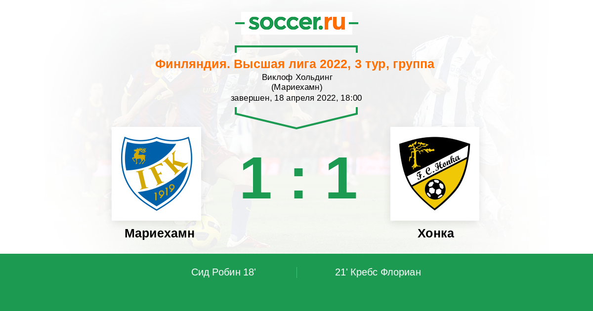 18' (1:0) Сид Робин (17) (Латонен Йоаким (14))