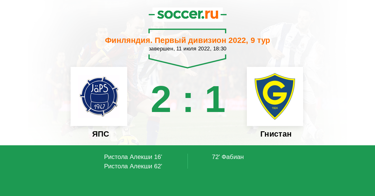 16' (1:0) Ристола Алекши (9)