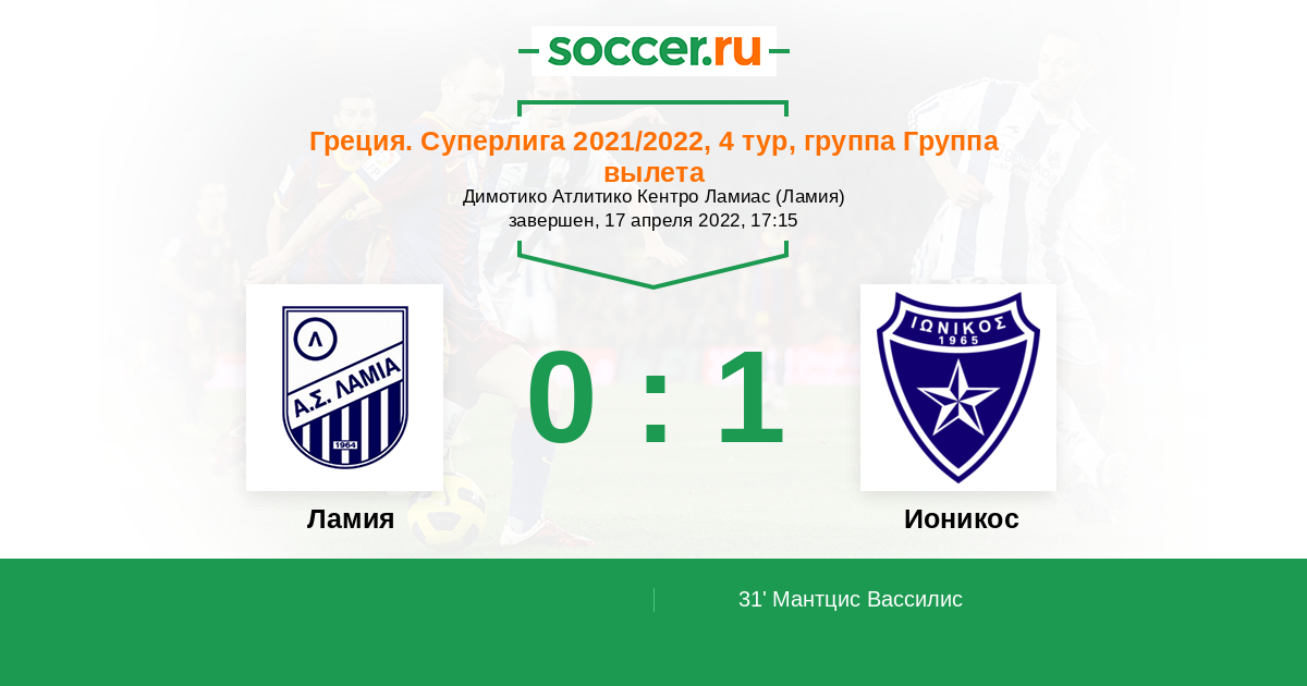 31' (0:1) Мантцис Вассилис (99) (Ленис Рейнальдо (92))