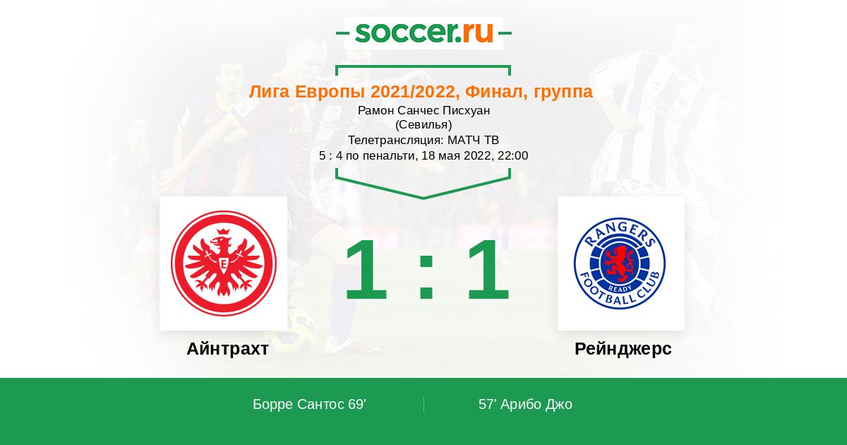 Матч будет равный. Мяч будет круглый — фаворитов, для меня, тут нет. Рейнджерс проиграл чемпионство Селтику, Айнтрахт и вовсе финишировал 11-м в своей лиге. Клубы выложатся по-полной.