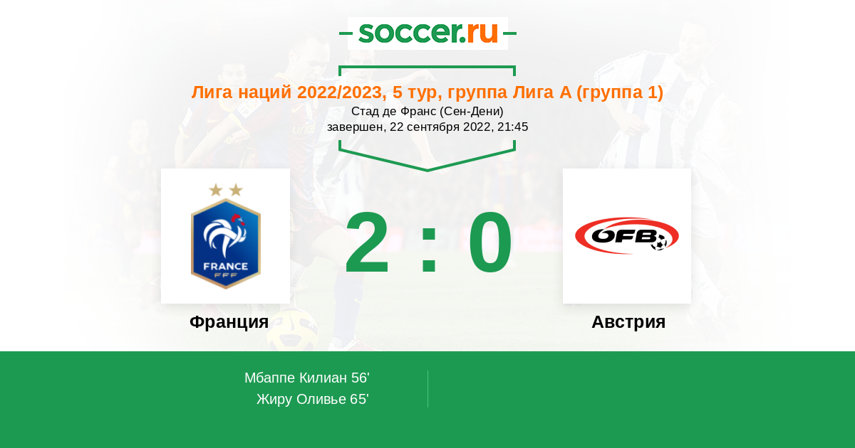 Предстоящий матч может стать парадом ошибок: у Франции есть проблемы в обороне, у сборной Австрии при Рангнике стиль игры очень энергозатратный и требует особого внимания в защите, чего зачастую не хватает. С другой стороны, как ни крути, у хозяев есть Килиан Мбаппе, Антуан Гризманн и Оливье Жиру — они точно перевешивают старания австрийцев вместе с напором Марко Арнаутовича.