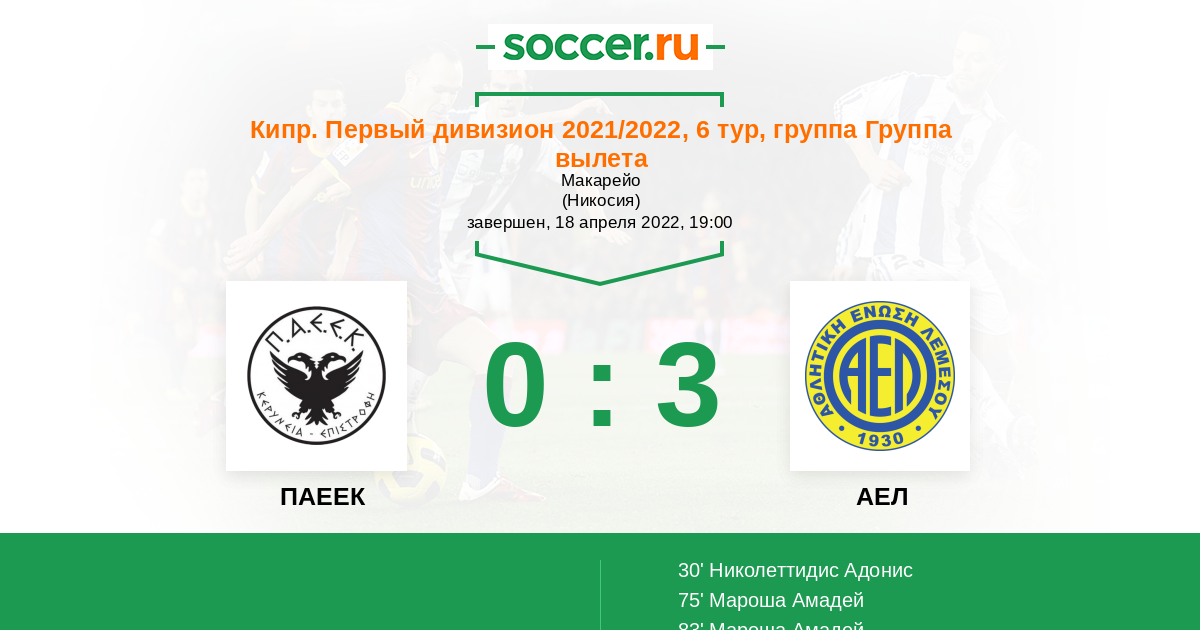 30' (0:1) Николеттидис Адонис (89) (Щепович Стефан (12))