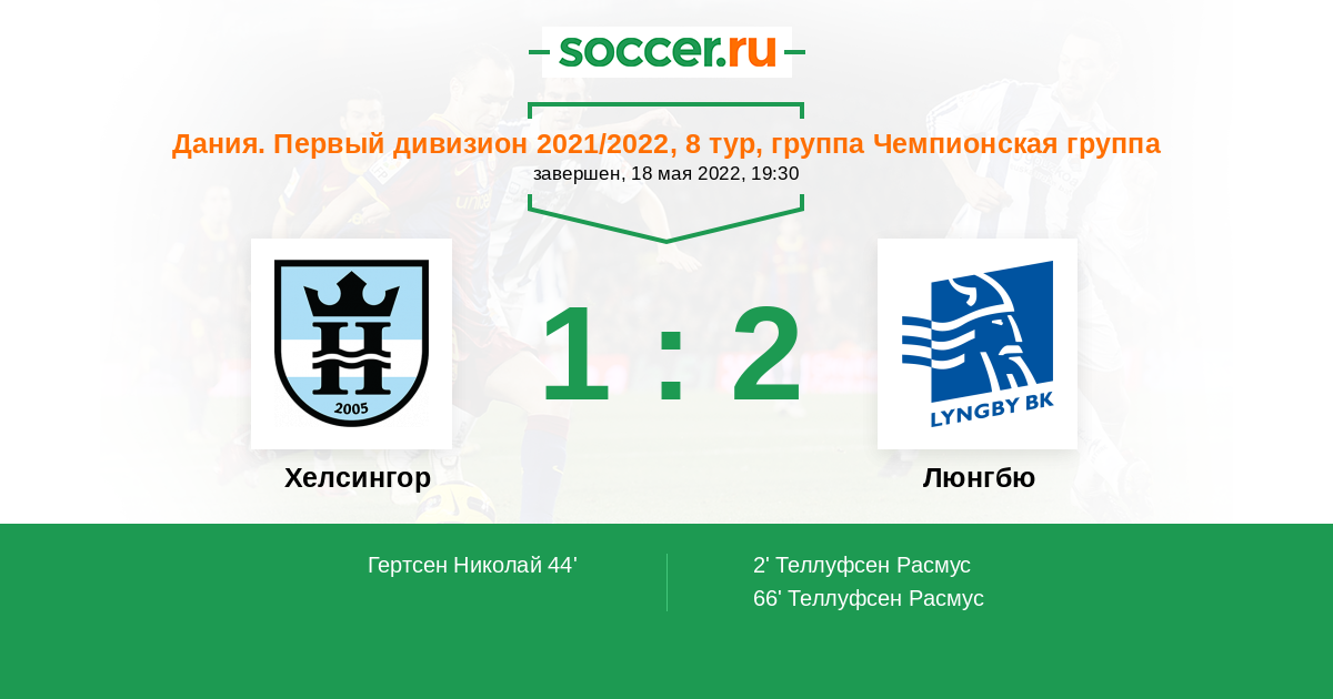 2' (0:1) Теллуфсен Расмус (10) (Йоргенсен Каспер (20))