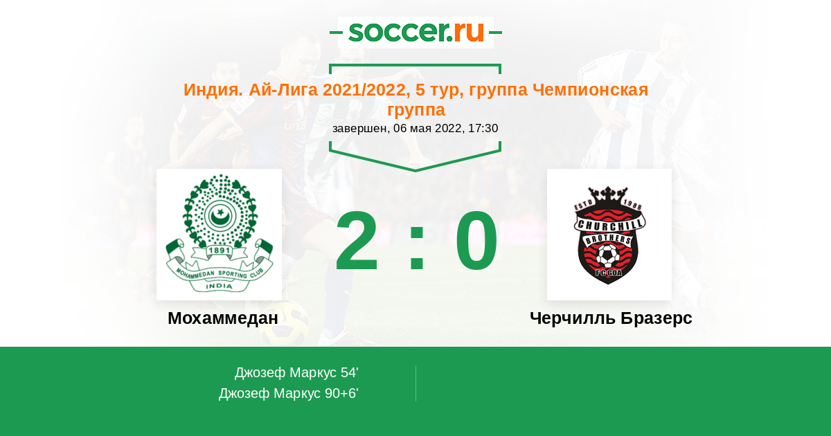 54' (1:0) Джозеф Маркус (10) (Ванлалремдика Брандон (28))