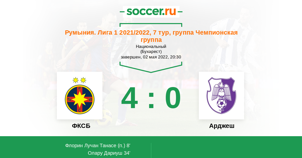 34' (2:0) Олару Дариуш (27) (Коман Флоринел (7))