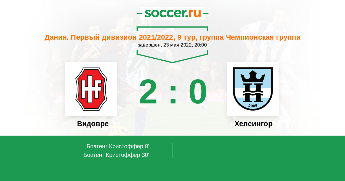 30' (2:0) Боатенг Кристоффер (45) (Эстберг Кристофер (14))