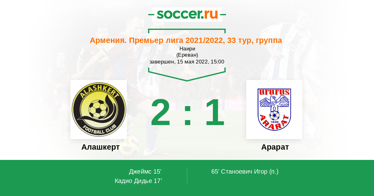 Запасные: Алию Исах (с 46'), Дарбинян Роберт (с 46'), Станоевич Игор (с 58'), Дагру Арманд (с 74'), Траоре Амара (с 87'), Симонян Арман, Назарян Ованнес, Айвазян Погос, Хакобян Роберт, Тихиде Зиле, Магакян Юрий