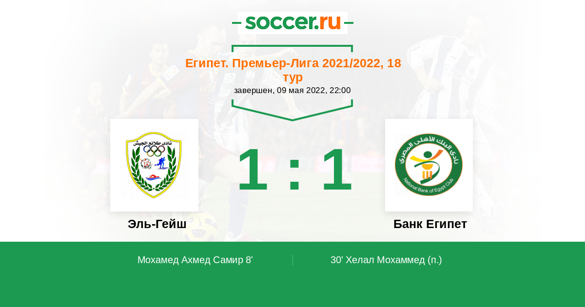 8' (1:0) Мохамед Ахмед Самир (19) (Омран Регаб (4))