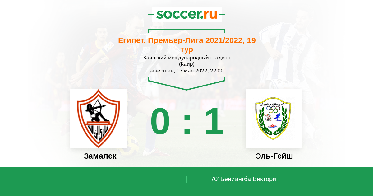 70' (0:1) Бениангба Виктори (25) (Мохамед Ахмед Самир (19))