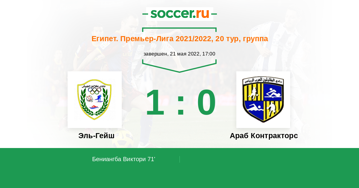 71' (1:0) Бениангба Виктори (25) (Амр Эль Сиси (7))
