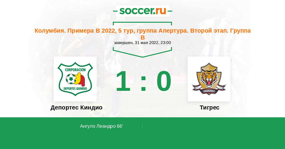 66' (1:0) Ангуло Леандро