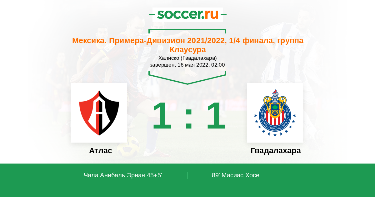 45+5' (1:0) Чала Анибаль Эрнан (21) (Роша Альдо (26))