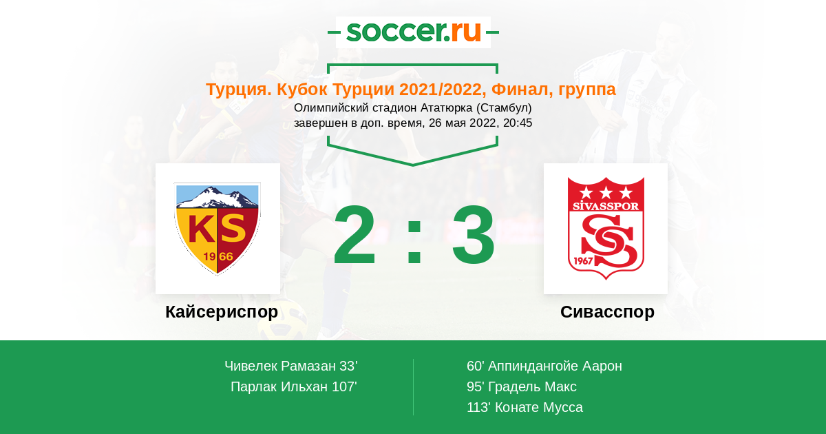 Запасные: 8 Кайоде Оларенваджу (с 99'), 15 Конате Мусса (с 111'), 6 Гутас Димитриос (с 117'), 20 Кесгин Керем (с 120+4'), 58 Эрдал Зия (с 120+4'), 25 Йылдырым Муаммер, 5 Кофи Исаак, 11 Феликс Хорхе, 14 Камара Самба, 62 Йигитер Озкан