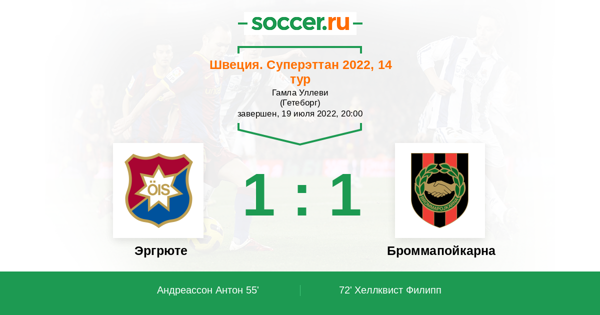 55' (1:0) Андреассон Антон (18)