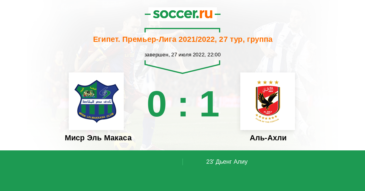 23' (0:1) Дьенг Алиу (15) (Радван Ахмед (35))