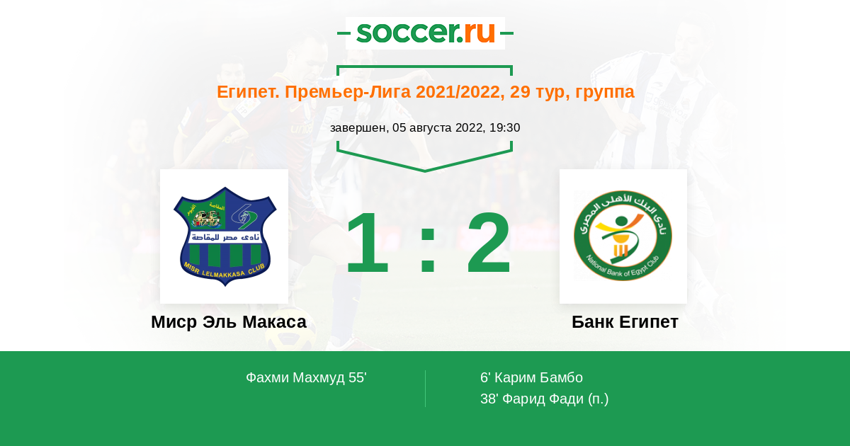 6' (0:1) Карим Бамбо (26) (Сайед Махмуд (8))