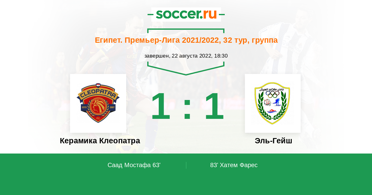 83' (1:1) Хатем Фарес (35) (Габер Мидо (10))