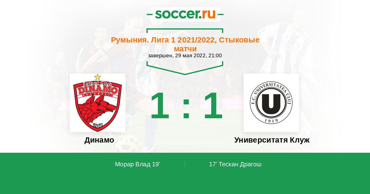 19' (1:1) Морар Влад (70) (Матей Козмин (10))