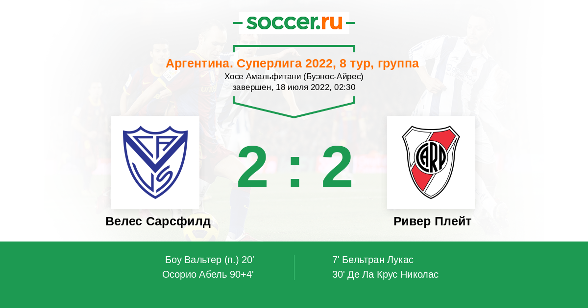 30' (1:2) Де Ла Крус Николас (11) (Бельтран Лукас (18))
