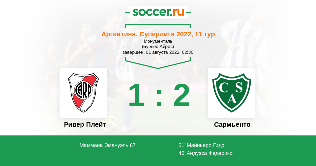Запасные: 26 Парадела Хосе (с 46'), 11 Де Ла Крус Николас (с 46'), 17 Диас Пауло (с 60'), 10 Кинтеро Хуан (с 60'), 7 Суарес Матиас (с 69'), 32 Почеттино Томас, 5 Сукулини Бруно, 33 Сентурион Эсекиль, 4 Майдана Хонатан, 22 Пинола Хавьер