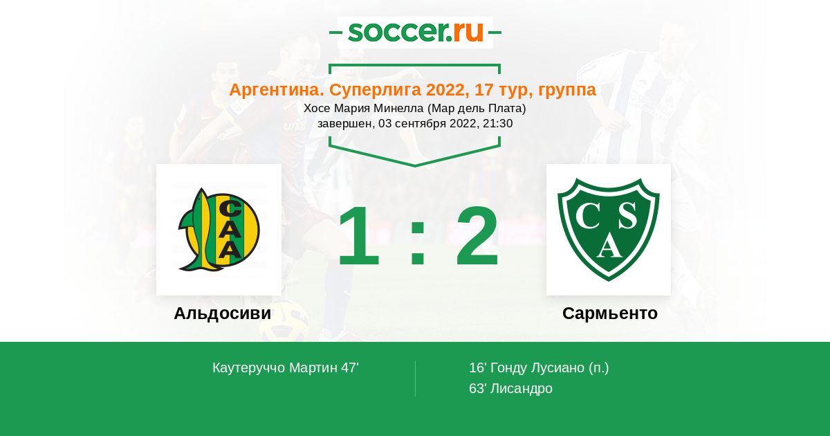 63' (1:2) Лисандро (7) (Кастро Лукас (19))