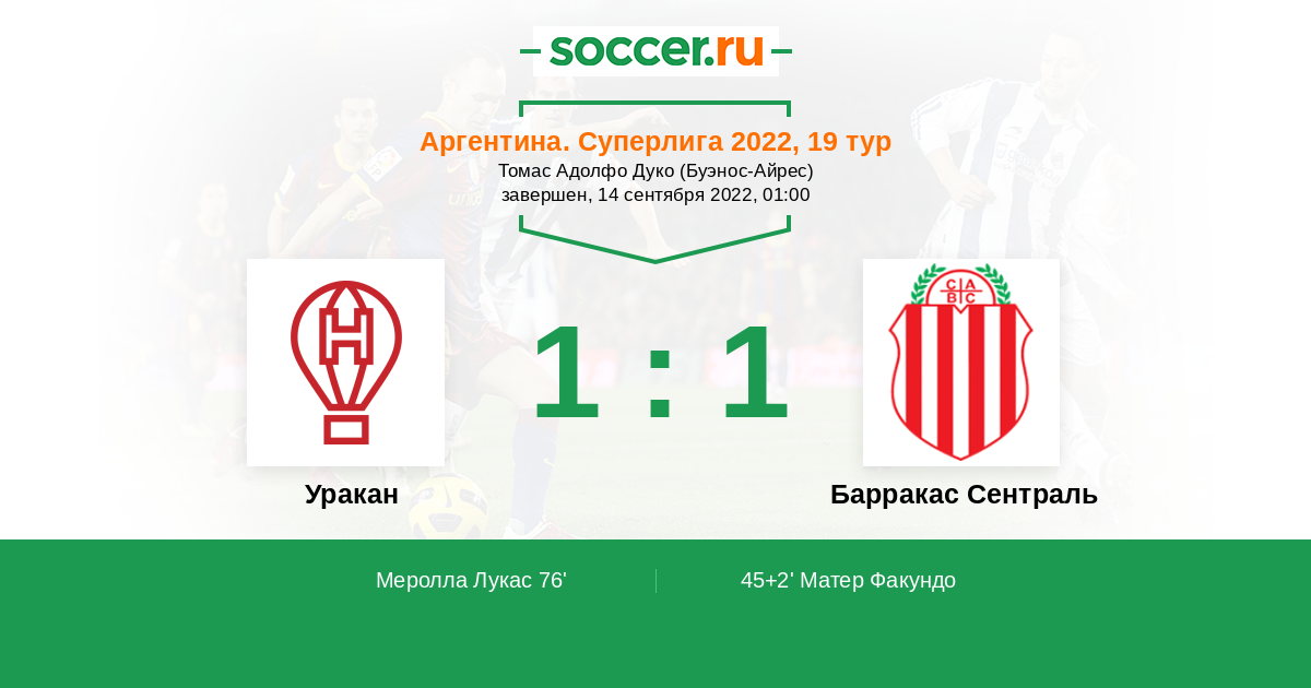 Уракан - Барракас Сентраль