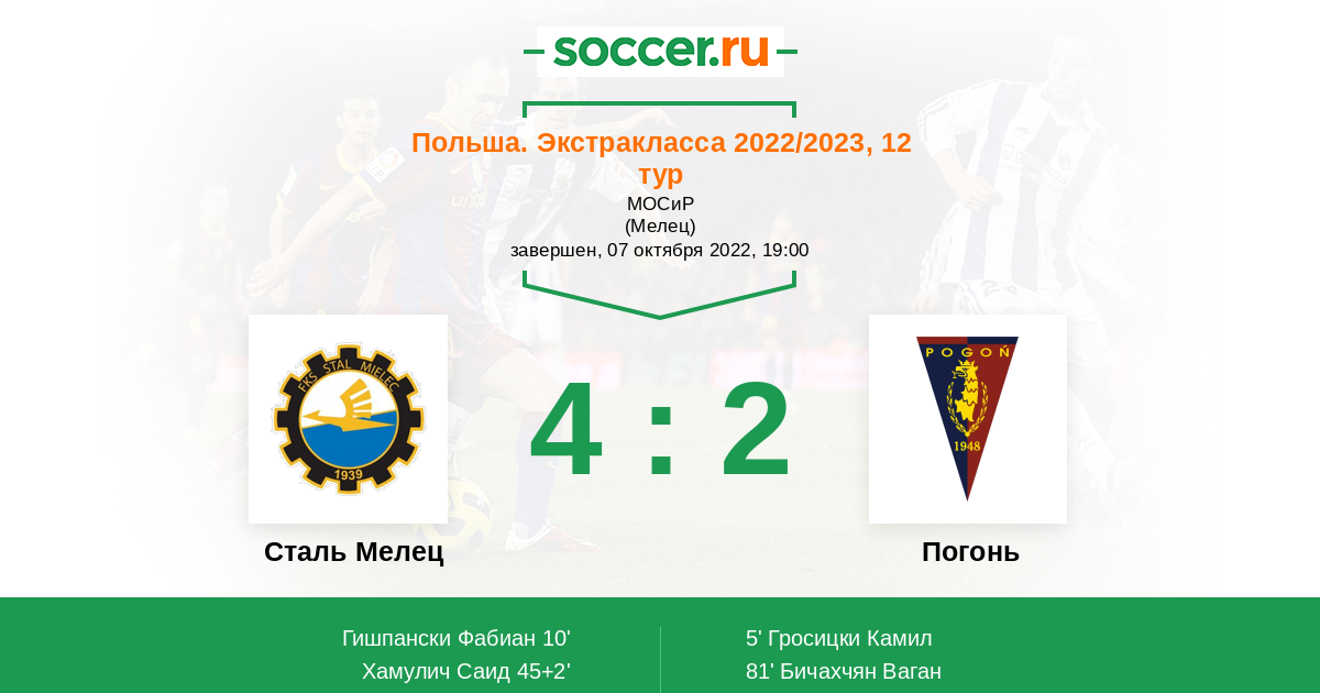45+2' (2:1) Хамулич Саид (99) (Доманьски Мацей (7))