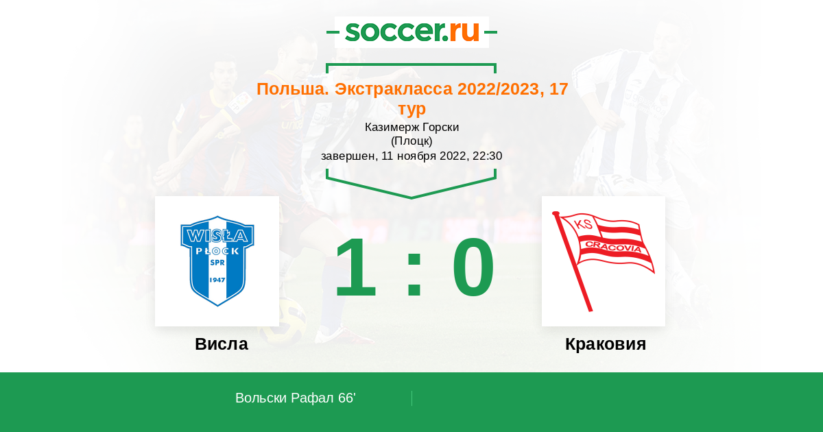 66' (1:0) Вольски Рафал (10) (Альварес Давид (11))
