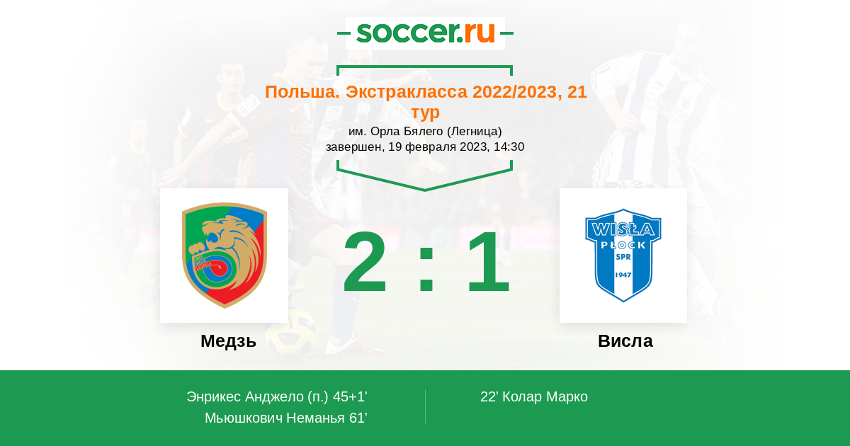 61' (2:1) Мьюшкович Неманья (25) (Матыня Губерт (3))