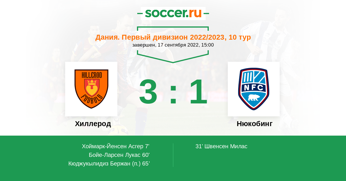 31' (1:1) Швенсен Милас (30) (Йенсен Каспер (3))