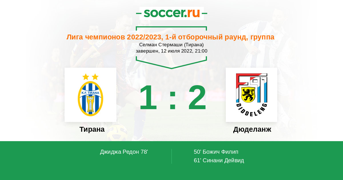 Фаворитом в этой паре я изначально видел именно Дюделанж. Люксембургский футбол сейчас на подъёме, а Тирана выступает неровно даже в албанском чемпионате. В общем гости сумеют удержать преимущество добытое в первом матче.