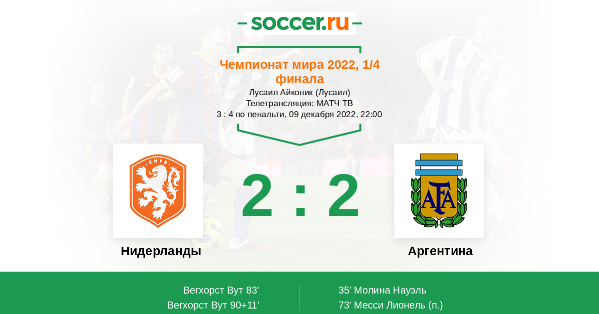 Запасные: 13 Бейлоу Джастин, 1 Пасвер Ремко, 3 де Лигт Маттейс, 6 де Врей Стефан, 26 Фримпонг Джереми, 16 Маласиа Тайрелл, 11 Бергейс Стевен (с 46'), 24 Тэйлор Кеннет, 20 Копмейнерс Тейн (с 46'), 25 Симонс Хави, 14 Классен Дэви, 12 Ланг Ноа (с 113'), 19 Вегхорст Вут (с 78'), 9 Де Йонг Люк (с 64'), 18 Янссен Винсент