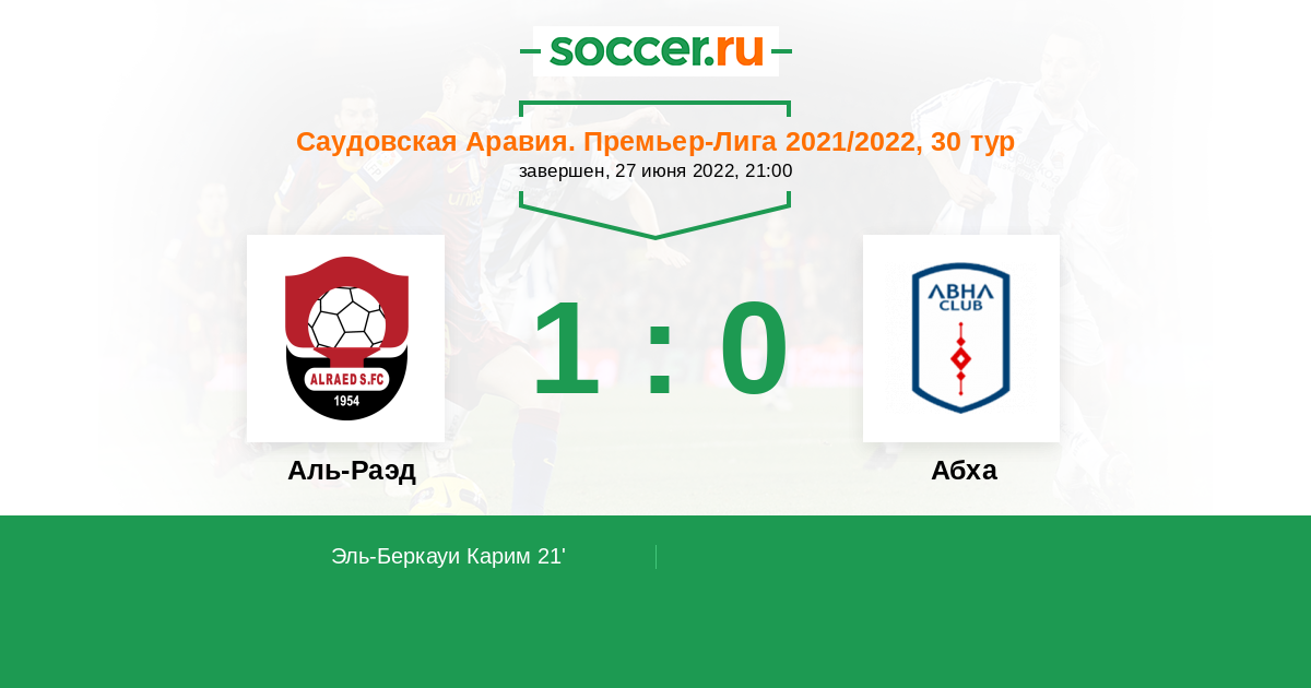 21' (1:0) Эль-Беркауи Карим (11) (Аль-Фарадж Авад (27))
