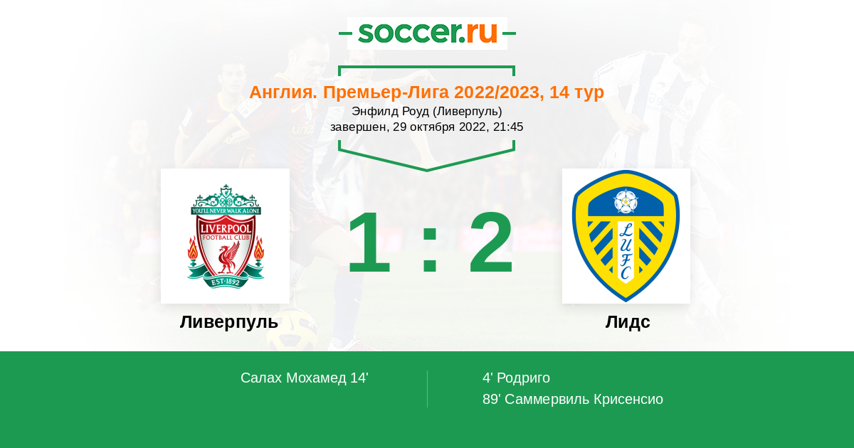 14' (1:1) Салах Мохамед (11) (Робертсон Эндрю (26))