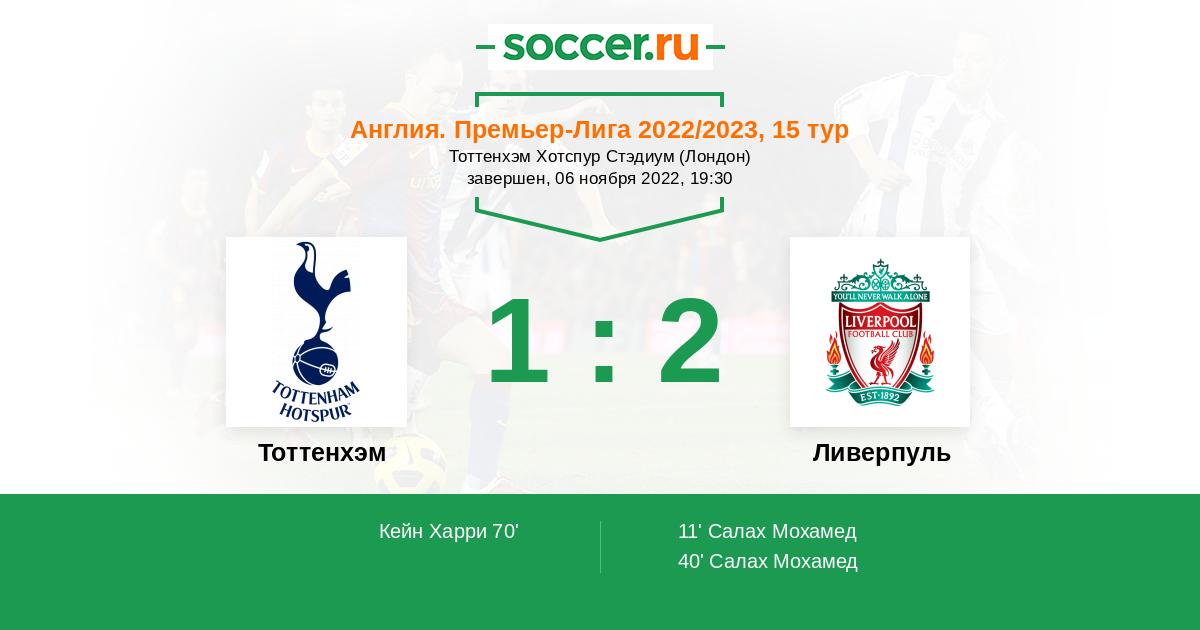 11' (0:1) Салах Мохамед (11) (Нуньес Дарвин (27))