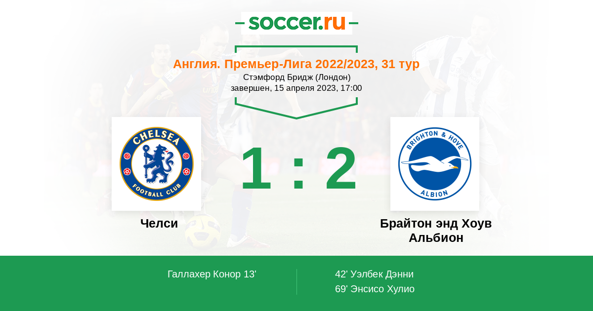 13' (1:0) Галлахер Конор (23) (Мудрик Михаил (15))
