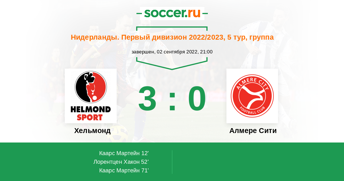 71' (3:0) Каарс Мартейн (9) (ван Влеркен Брам (2))