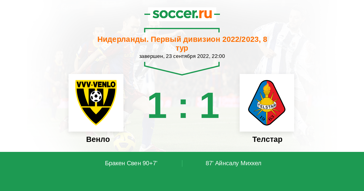 90+7' (1:1) Бракен Свен (9) (Ван дер Гоу Эннио (1))
