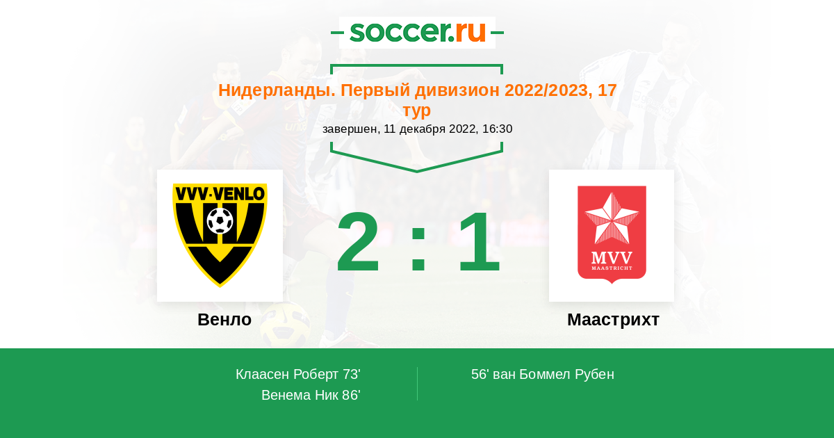 73' (1:1) Клаасен Роберт (16) (Деккер Тристан (17))