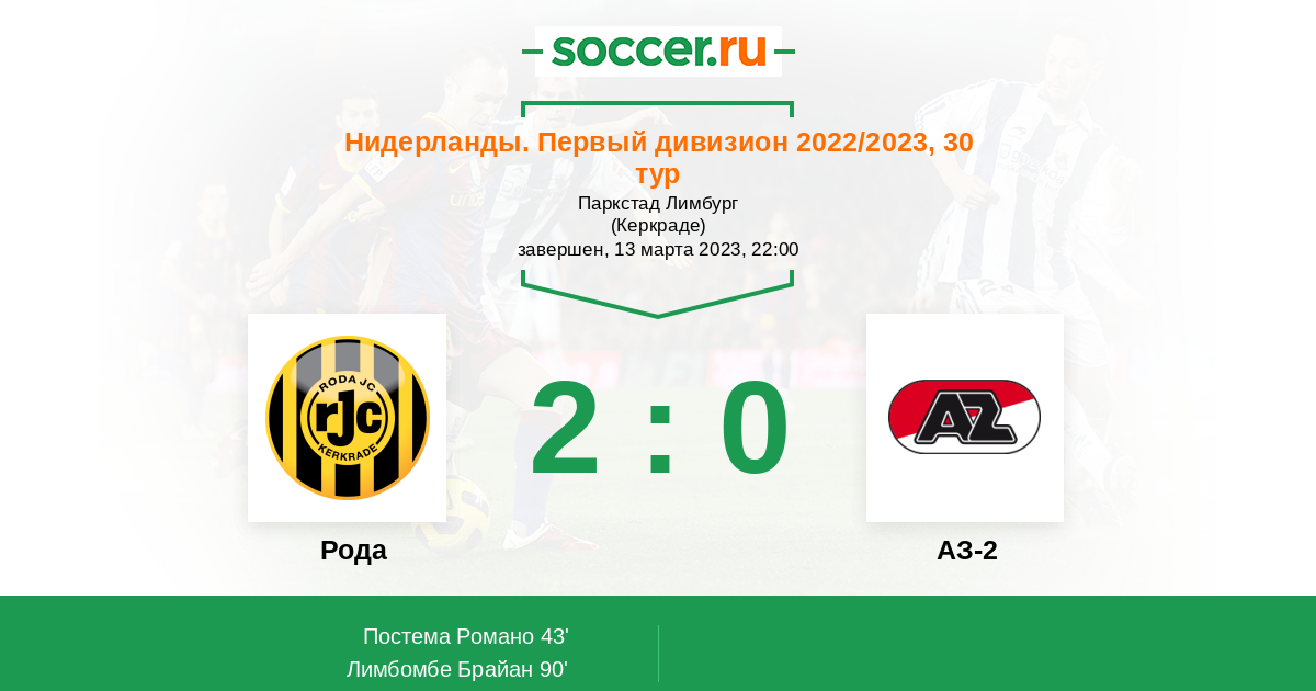 43' (1:0) Постема Романо (29) (Такинде Жамиль (17))
